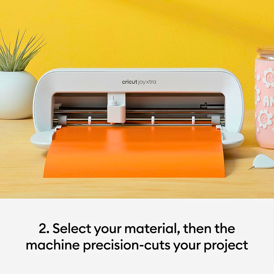 Voici le pack de démarrage Cricut Joy Xtra, édition 2025. La machine de découpe intelligente, élégante et s’intègre partout. La Cricut Joy Xtra découpe, écrit, dessine et métallise pour réaliser des projets populaires comme des autocollants en couleur, des cartes personnalisées, des t-shirts, des autocollants en vinyle et bien plus encore. Compatible avec l’application gratuite Design Space.