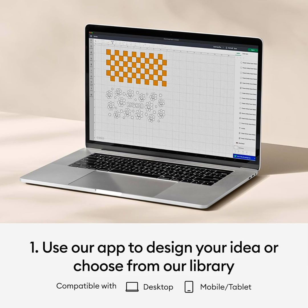• Téléchargez et découpez vos propres motifs ou choisissez dans la bibliothèque Cricut Design Space.